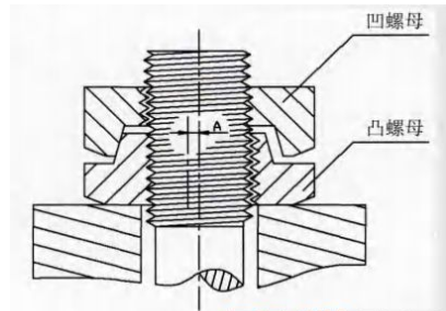 HARDLOCK是雙螺母(見圖3),內(nèi)螺母外側(cè)設有偏心的突起;外螺母為普通螺母結(jié)構(gòu),其內(nèi)側(cè)設有同心的凹槽;外螺母備緊時內(nèi)螺母的外側(cè)凸起與螺栓不同心,內(nèi)螺母的偏心突起與螺栓受到外螺母的擰緊擠壓產(chǎn)生徑向力,相當于在螺紋間隙中增加了鍥子,螺紋全方位鎖緊。